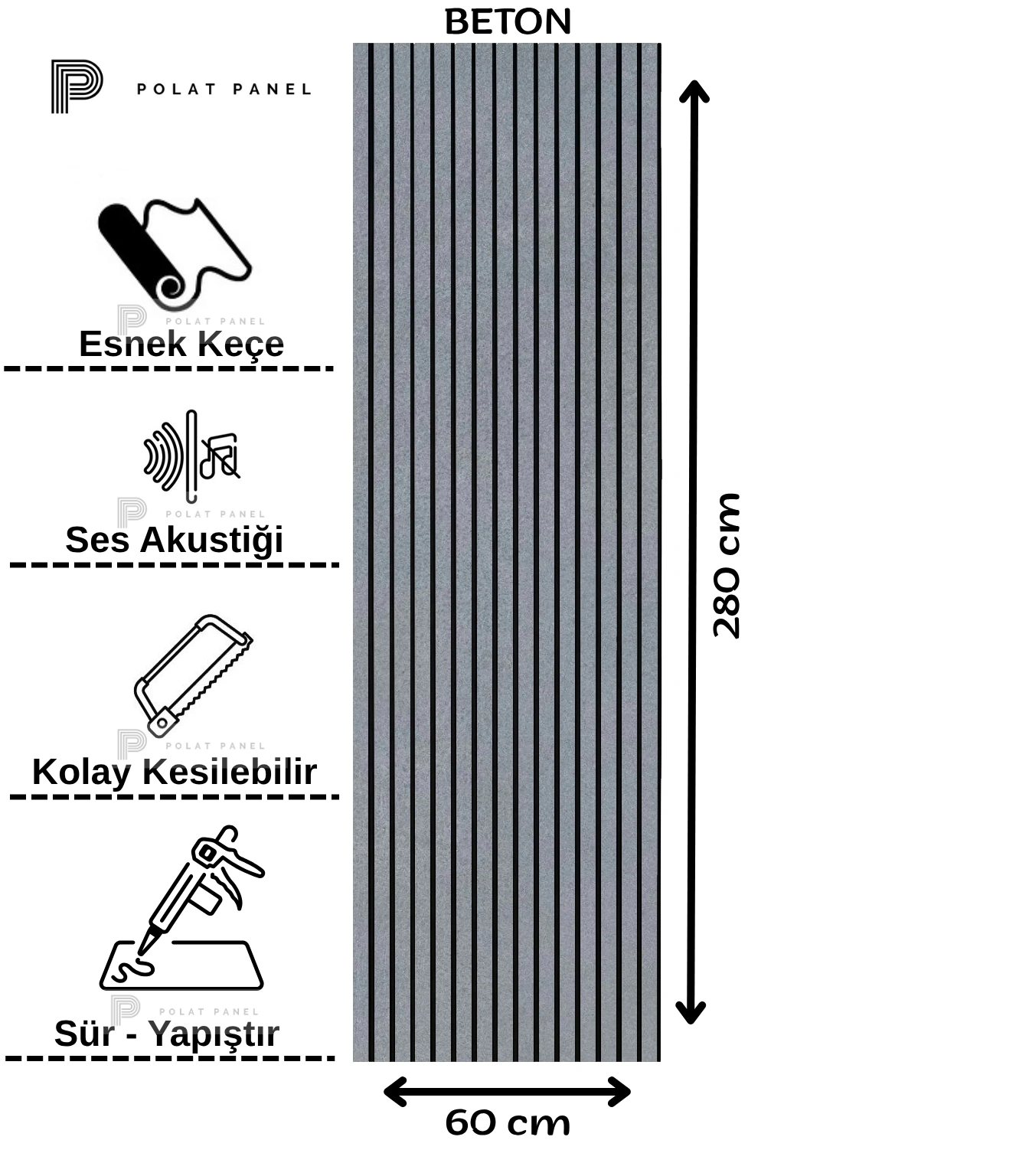 Beton Esnek Keçeli Slim Duvar Paneli 60cm