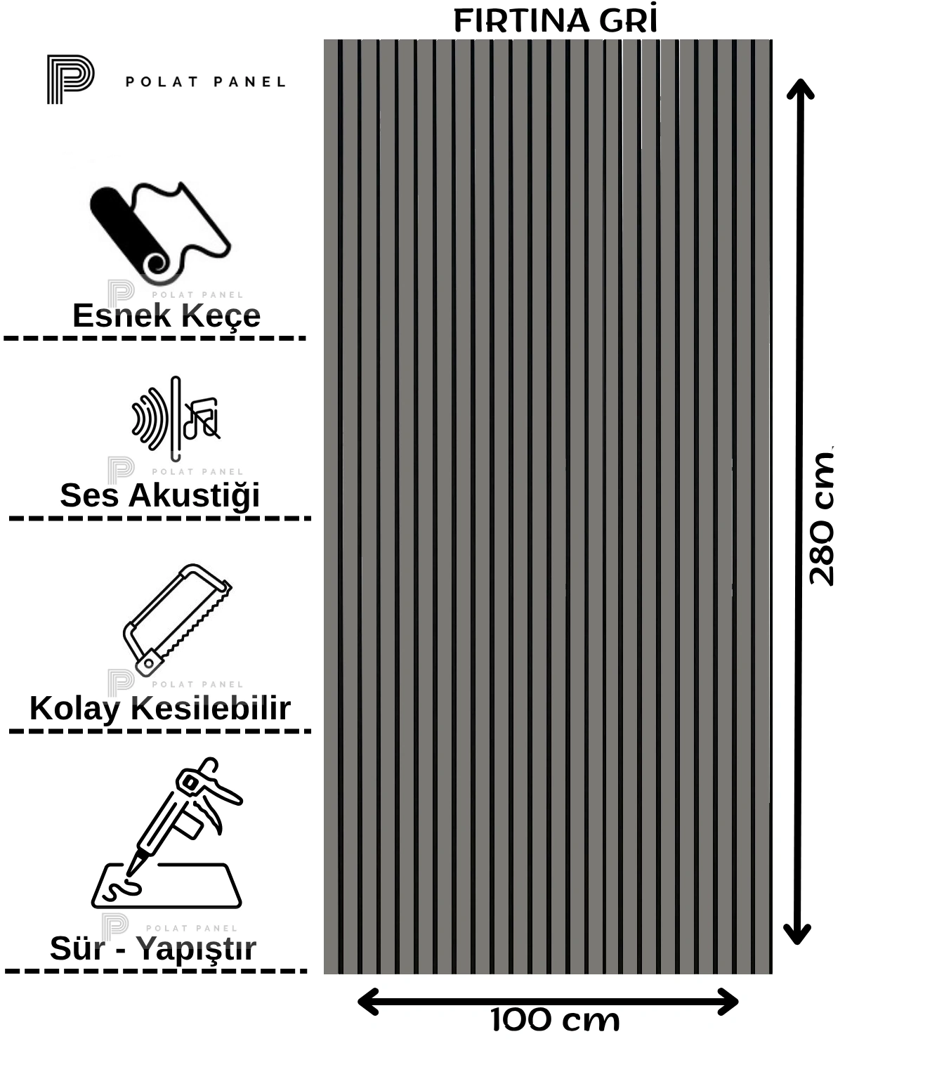 Fırtına Gri Esnek Keçeli Slim Duvar Paneli 100cm
