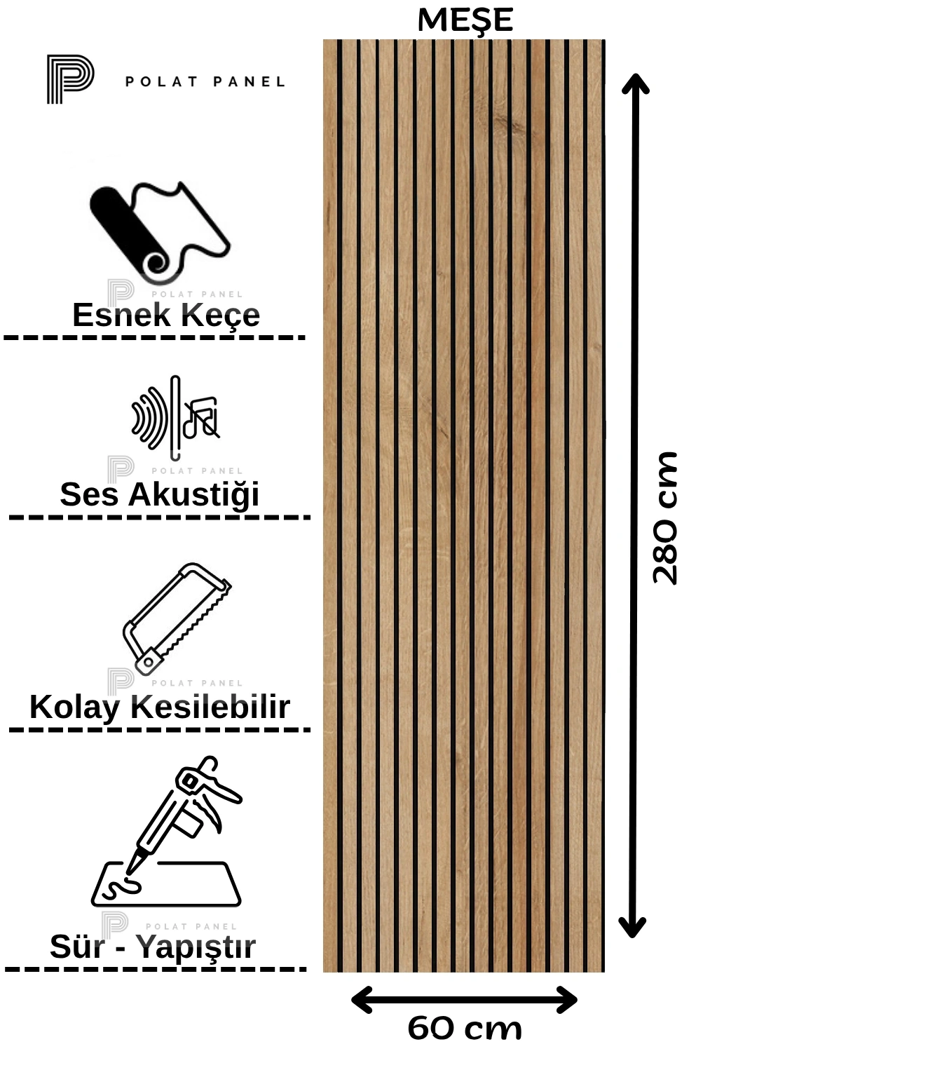 Meşe Esnek Keçeli Slim Duvar Paneli 60cm